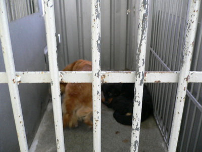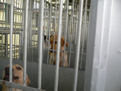 圖四:各地收容所都有一大堆黃金獵犬遭棄養,但蘆洲捕犬班居然利用收容所的設備關了狼犬及黃金獵犬各一對來繁殖。說是要當作「護衛犬」?真相是如此嗎?還是將繁殖下來的小狗廉價賣到夜市或寵物商?種種管理的失序,該如何嚴辦!