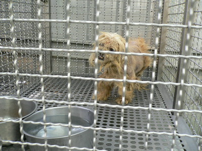 圖二:全身毛髮糾結,嚴重皮膚病,生殖器明顯紅腫的西施犬。