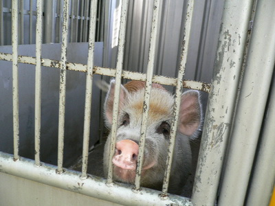圖五:收容所內除了各種名犬外,還有一隻被遺棄的豬。這隻豬被養在枯燥的欄舍裡,不知未來的下場會如何?