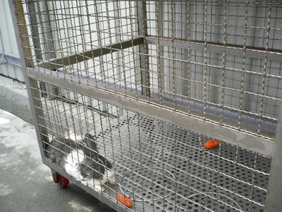 圖一:狹窄的籠子關兩隻中型犬,狗幾乎沒有活動空間。