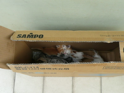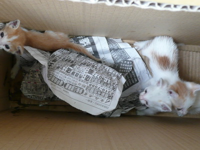 圖十四:民眾帶來棄養的三隻幼貓,就裝箱隨意放置在牆邊。